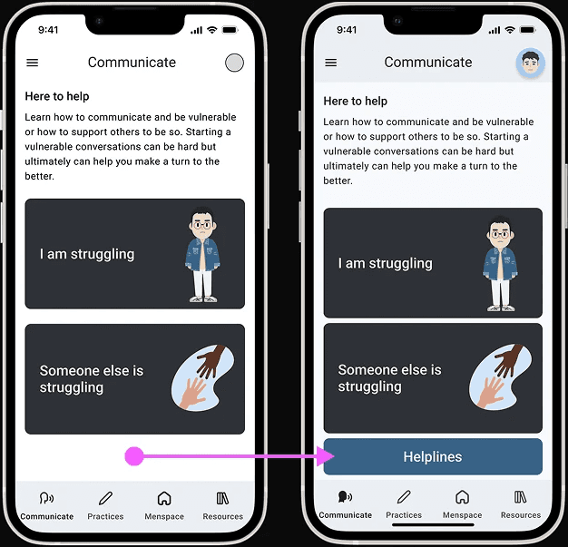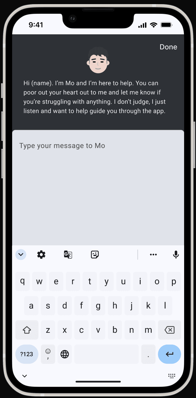 The majority of users accessing the app are looking for help; oftentimes they will be emotional or frustrated. To offer optimal support, a personalised AI app guide lets you vent and express whatever is on your mind. After understanding your needs the guide then creates a personalised pathway leading you to the most suitable resources and sections within the app.