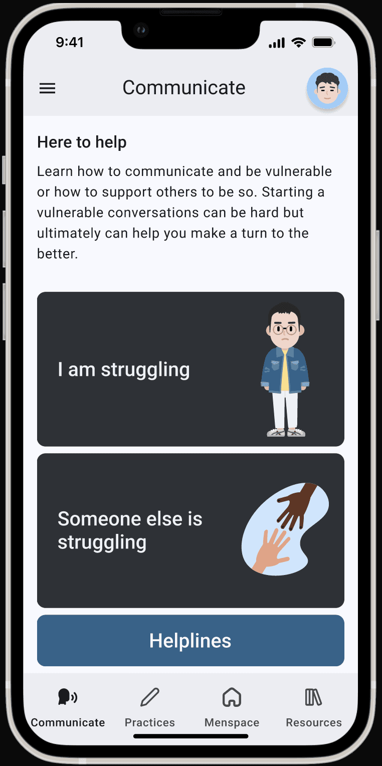 MENSPACE: A community space to engage, share insights and experiences anonymously. No judgement is allowed.