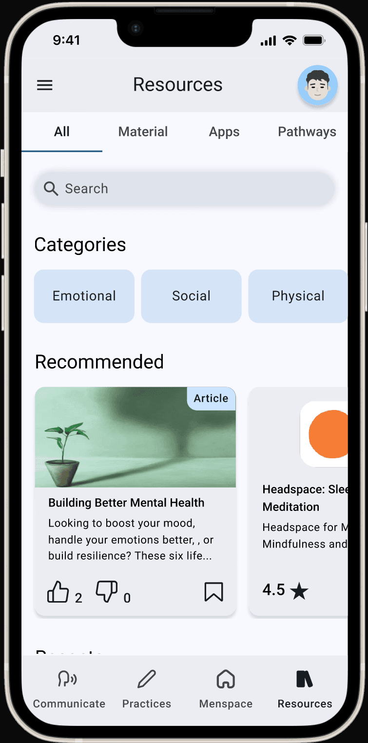 RESOURCES: Create and find personalised pathways and find further resources outside of the app.