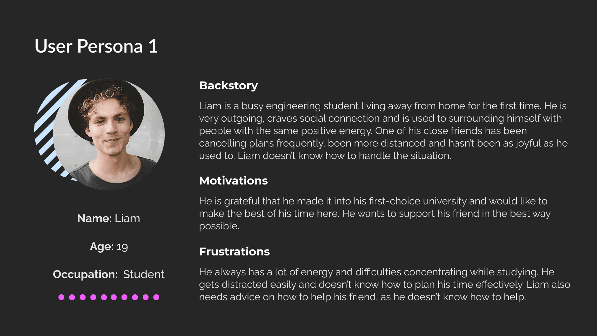 Th user personas capture different emotional states, communication patterns, and coping behaviours rather than demographic differences. They represent recurring challenges users face when navigating personal relationships, emotional expression, and self-regulation.